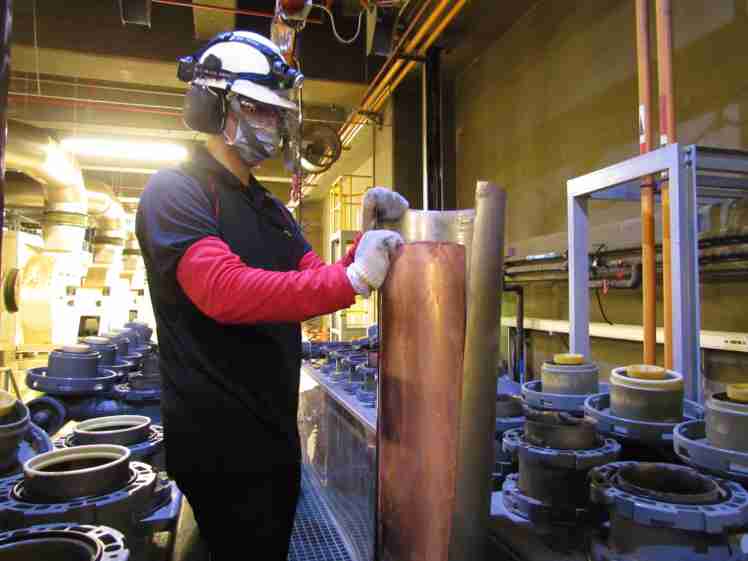 龙门国际将废弃物转化成有效的工业或民生原物料,,,图为废铜液淬炼后再制成纯度极高的铜管