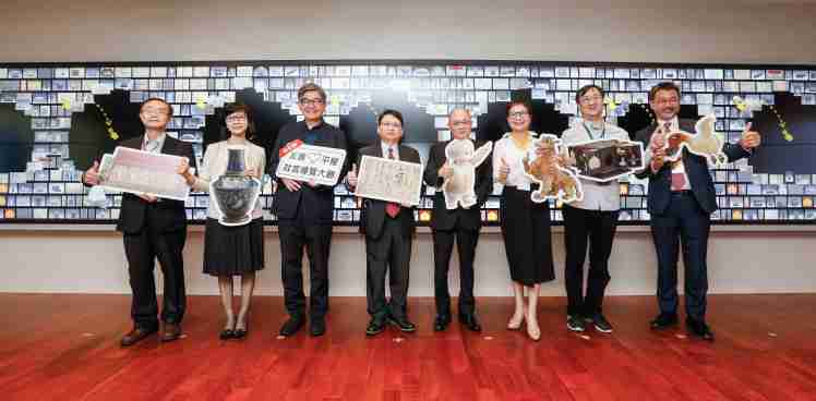 龙门国际携手创利空间为故宫建置的智慧文物互动导览墙及轮播墙,,,今日正式启用。。(左四:龙门国际新事业暨投资管理总部副总经理杨本豫、、、右四:故宫博物院院长吴密察、、右三:太极影音董事长黄宝云)